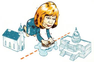 In legislative testimony on a school-choice bill in 1995, she said it was “un-American” to exclude private religious schools from government funding and that the separation of church and state is an “unconstitutional doctrine.”