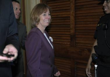 Nevada Republican Senate candidate Sharron Angle walks on Capitol Hill in Washington, Tuesday, June 15, 2010, as she leaves the Republican party policy luncheon. Angle is running against Senate Majority Leader Harry Reid.