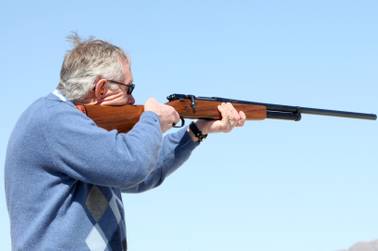Reid practiced shooting at one of the ranges, firing six rounds from a 12-gauge shotgun and hitting two clay birds. Each clay bird busted into pieces and the crowd cheered as Reid reloaded the gun. Collins also fired several rounds.