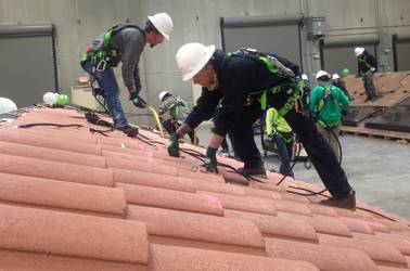 SolarCity workers practice installing solar panels at the company’s new facility in Las Vegas.