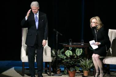 Former President Bill Clinton sits down to answer questions with Jan Jones, senior vice president of communications and government relations for Harrah’s Entertainment in front of a crowd of Harrah’s employees at the Colosseum at Caesars Palace in Las Vegas Monday Feb. 22, 2010.