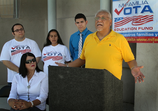 Francisco Javier Santoyo, owner of Oro & Jewelers in Boulder City, discusses immigration reform at a press conference organized by Mi Familia Vota on Thursday, Sept. 5. Mi Familia Vota and other organizations are canvassing neighborhoods and holding numerous events in the coming month to help spur progress in Congress on immigration reform. Photo by: Tovin Lapan