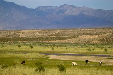 Cattle graze by the Virgin River near Bunkerville on Tuesday, April 15, 2014.