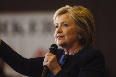 Democratic presidential candidate Hillary Clinton speaks at a rally Saturday, Feb. 13, 2016, in Henderson.