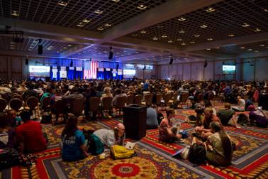 Hillary Clinton and Bernie Sanders supporters attend the state Democratic Party convention at Paris Hotel and Casino, Las Vegas, Saturday May 14, 2016.