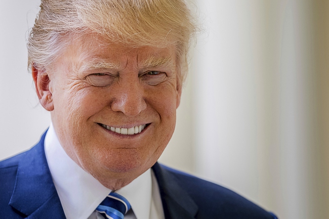 President Donald Trump poses for a photograph on West Wing Colonnade at the White House in Washington, Friday, April 21, 2017. Photo by: Andrew Harnik / AP
