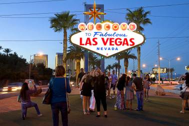 Tourists take photos at the Welcome to Fabulous Las Vegas sign Saturday, March 14, 2015, on the Strip.