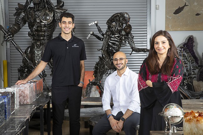 Fahima Khalaf poses with her sons Mohammad, center, 20, and RJ, 25, in the showroom of Kalifano, an eclectic, family-run business that specializes in Native American jewelry, fossils, minerals and recycled-metal art. Family members recently recounted their experiences as Muslim Americans on Sept. 11, 2001, and in the years since. Photo by: Steve Marcus